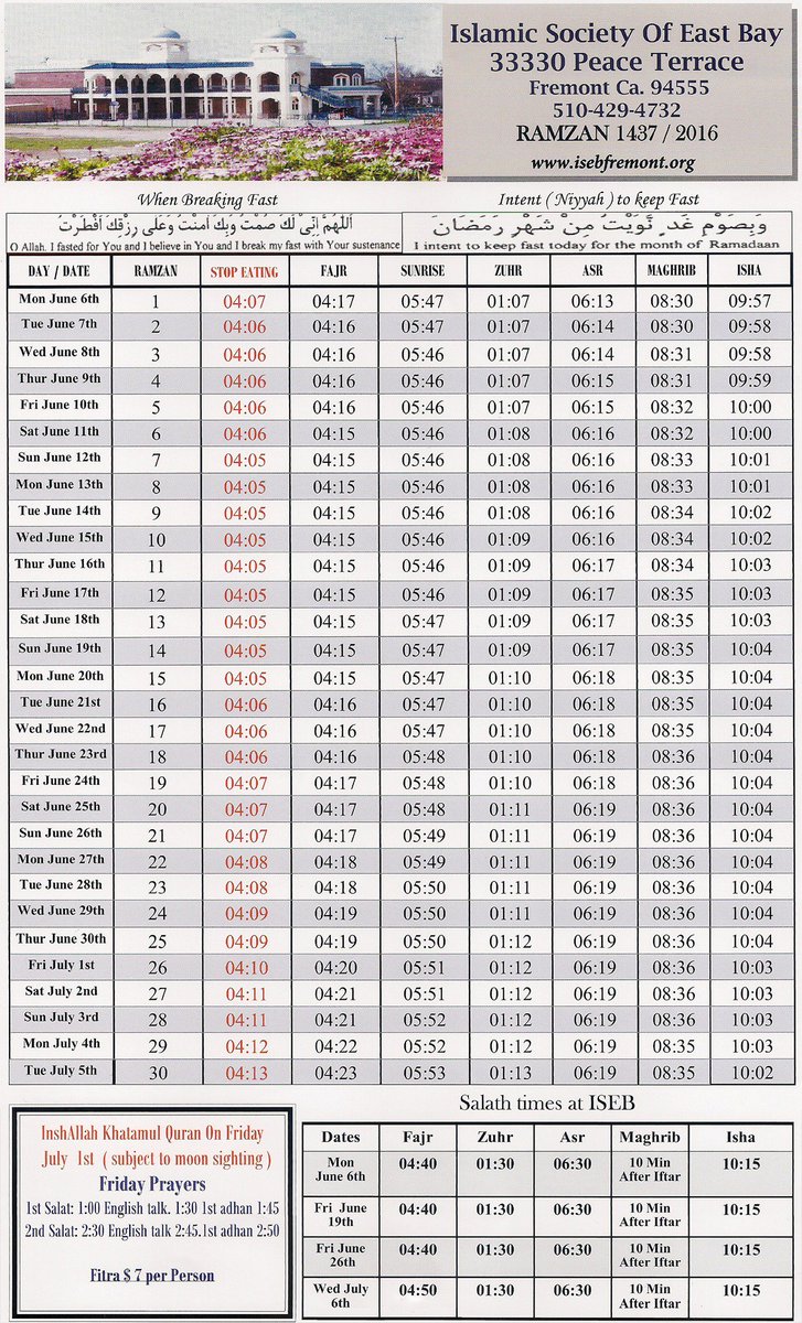 Fremont Ramadan Timings 2021 Calendar Iftar Sehri Time Table